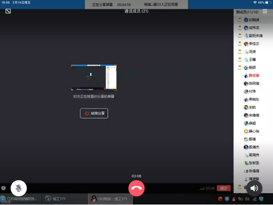 为了贯彻全国教育系统应对新型冠状病毒感染肺炎疫情防控工作视频会议精神、落实省学校防控组《关于组织开展全省高校疫情防控线上专题培训的通知》,2月14日下午,我院工学部召开了信工171班“疫情防控”线上培训会议。参与本次会议的为工学部17级辅导员张茜和信工171班全体同学,本次会议由团支书纪晓迪主持进行。