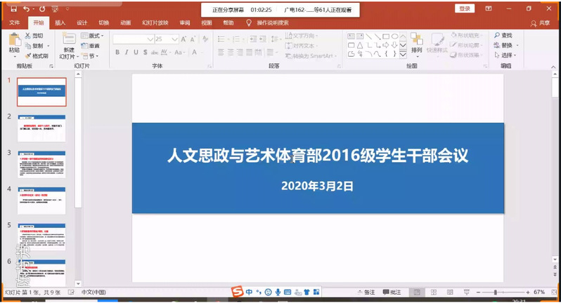 3月2日晚,我院人文思政与艺术体育部(启东)召开了2016级学生干部线上会议,会议由辅导员陈芳芳主持,全体学生干部参加。
