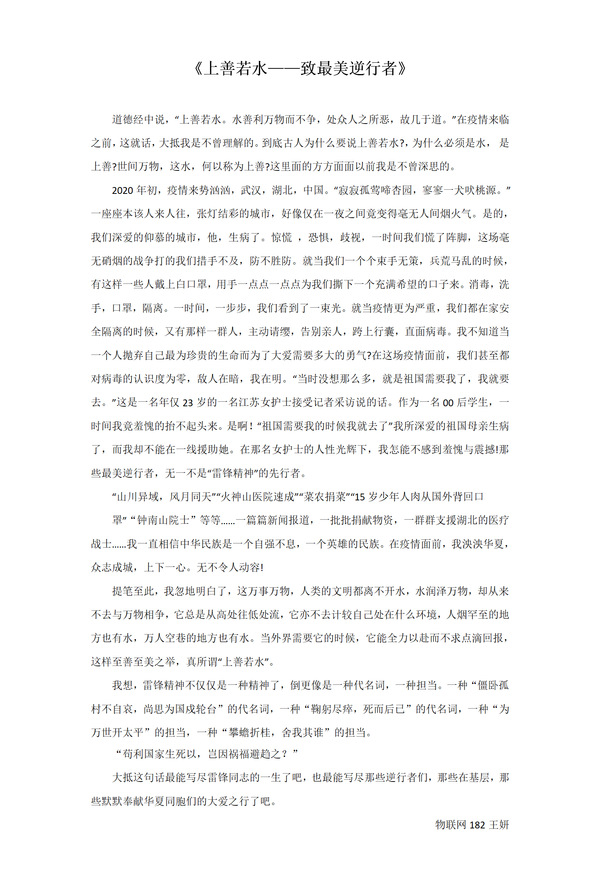 没有枪支,没有坦克,没有军队,只有病毒,恐惧,惊慌。“苟利国家生死以,岂因祸福避趋之”那些逆行者们,那些炎黄子孙,一次次直面疫情,一次次鞠躬尽瘁。不正是雷锋精神的体现吗?