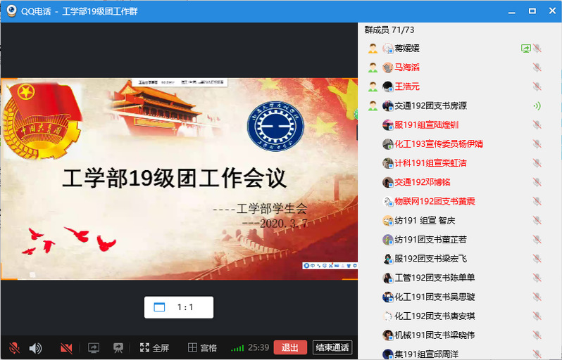 为坚决打赢疫情防控阻击战,减轻疫情对正常开学造成的影响,贯彻落实好“停课不停教,停课不停学”的要求,3月8日下午,我院工学部开展了“第二课堂”19级团工作会议。本次会议由工学部学生团工作负责人蒋媛媛主持进行,全体工学部19级团支书参与会议,工学部学生分会主席王浩元、宣传部长马海滔等学生干部旁听指导。