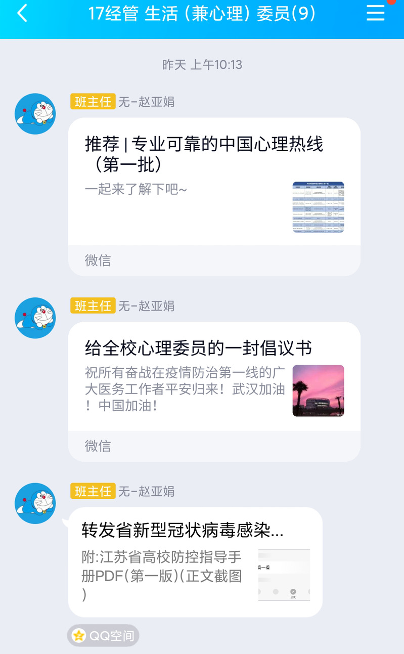 2020年3月10日下午16时10分,理学与经管学部经管17级心理委员工作例会以QQ语音形式召开,会议由辅导员赵亚娟老师主持,班级心理委员参会。