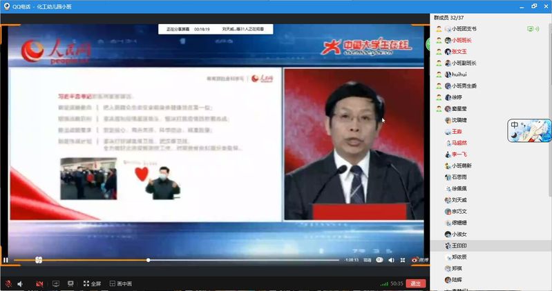 为将高校思政课教学优势转化为防疫斗争的强大力量,3月9日下午,我院工学部辅导员胡晓晴老师组织18级各班于线上一同观看了教育部社会科学司、人民网联合举办的“全国大学生同上一堂疫情防控思政大课”。