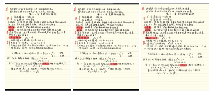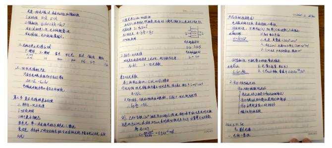 每日上课前我会对当天学习内容进行预习,课后进行回顾。并且在上课的时候会跟随老师的节奏在ppt上为重要知识做标记,此外我会借助marginnote等软件做出知识点的思维导图,可以有利于自己更加清楚直观的看到每部分涉及的内容,方便日后复习。我在做笔记的时候习惯用三种颜色(红色、蓝色、黑色)的笔,红色一般用来标注非常重要的知识点,蓝色用来标记相对重要的知识,黑色用来记一般知识,通过三种颜色的笔交替做笔记可以使重要知识点更加醒目。
