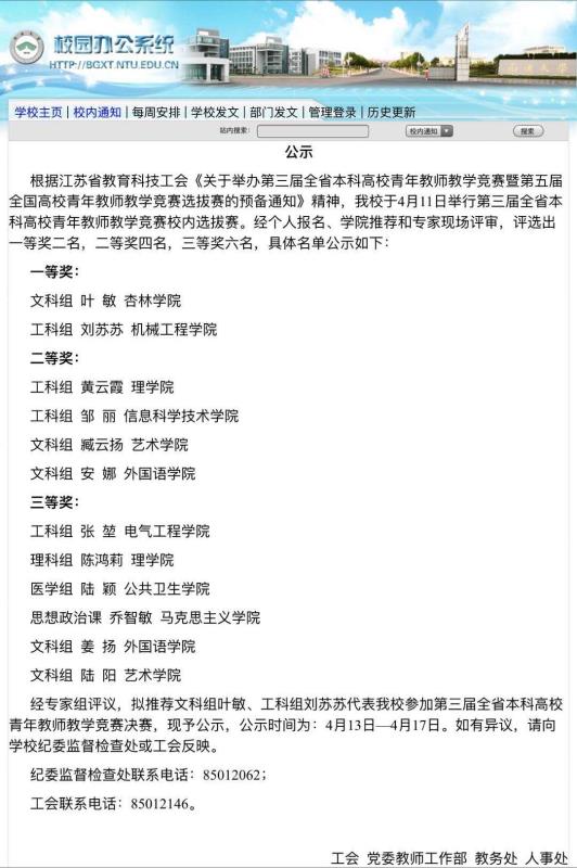 4月11日,南通大学举行第三届全省本科高校青年教师教学竞赛校内选拔赛。经个人报名、学院初审、现场上课、专家现场评审等环节,我院人文思政与艺术体育学部的叶敏老师获得南通大学文科组一等奖,她将代表学校参加第三届全省本科高校青年教师教学竞赛决赛。