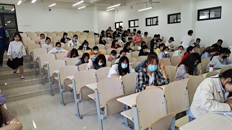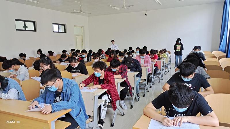 根据疫情安排要求,本次期中考试较大的拉开了考生的座位间距并要求每位考生佩戴口罩。在考试的前20分钟,考生提前进场就坐,辅导员曾兵就本次大学物理考试为同学们提出几点要求:一是严肃考风考纪,提升诚信品质;二是考前需带上学生证等证件;三是认真作答,不提前交卷。整场考试严格按照期末考试的流程进行,任何与考试无关的物品交到讲台前,手机则关机或静音放在手机管理带中。考试过程中,同学们全神贯注地答题且自觉遵守考试纪律,考场秩序有条不紊。