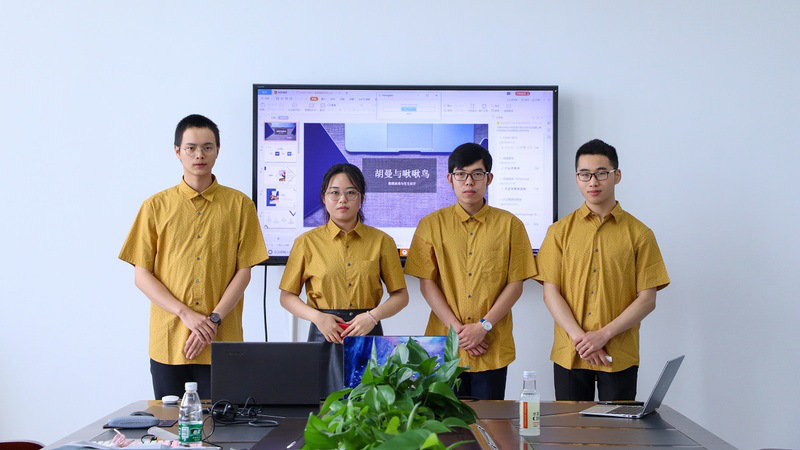 大赛决赛采用“选手线上答辩,评委在线评审”的方式进行,由选手通过“屏幕共享”的方式展示答辩内容。游戏作品负责人李璇说:“《胡曼与啾啾鸟》不仅仅是一个数媒交互类游戏作品,更是一个值得用心倾听的故事。作为青年大学生,面对重大突发事件,运用所学知识,将心中的理想,肩上的担当做出范围内的尝试,努力把传统的概念变成现代的技术,把独特的原创变成流行的趋势,把学术的收获变成大众的体验,充分运用年轻的思维把自己的热爱、热情和热血变成一个可以和大家分享的作品。”平面设计作品《图“灵”文化——中国图腾在服饰中的运用》的作者汪婉婉表示:“通过这次图腾为主題的设计实践,进行图案内容和形式上的创新,将理论知识用在真实案例设计之中,增加理论的说服性和可行性,我们希望将图腾元素运用在现代服饰设计中,从而形成现当代时尚流行元素与本土民族传统元素相结合的设计方式和创新理念,一方面为图腾元素在现当代服饰上的运用找出正确方向,丰富和发展现当代图案形式,另一方面也能弘扬深厚的民族精神和文化内涵,真正将民族的变为世界的。”