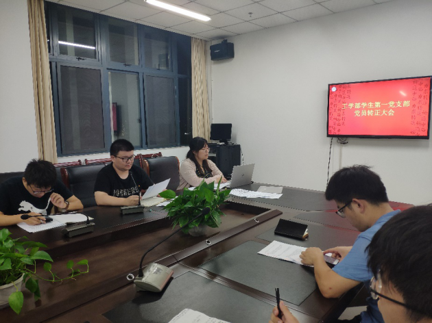 在工学部学生第一党支部书记胡晓晴的精心安排下,大会然后进行了接收预备党员。胡书记说,各位同志,今天我们召开工学部学生第一党支部大会讨论汤瑞松、陈禹吣、栾玉佳等9位同学的发展问题。紧接着汤瑞松同志宣读了入党志愿书,入党介绍人祁大卫同志介绍了主要情况,愿意介绍其加入中国共产党。然后支委会报告了审查情况,汤瑞松同志审查符合要求。大会在充分听取各方面的意见后与会党员何俊含发表意见,给汤瑞松同志提出了不足和今后努力的方向,表示赞同其加入党组织。之后大会全体正式党员采用无记名投票表决汤瑞松同志发展问题,紧接着支部书记胡晓晴宣读支部大会决议草案,同意接收汤瑞松同志为中共预备党员。