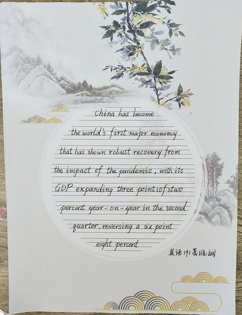 本次活动的举办丰富了学生们的假期生活,为学生们展示自我提供了别样的舞台。一幅幅美观工整的书法作品充分展示了学生们的爱国情怀,下面让我们来一睹为快。