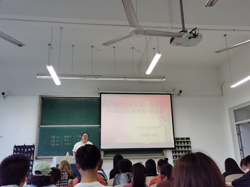 10月11日下午,人文思政与艺术体育部召开2020级新生班委第一次会议,会议由学部20级辅导员陈云主持,代领各班全体班干学习班委工作制度、工作职责,同时对近期工作进行了布置。
