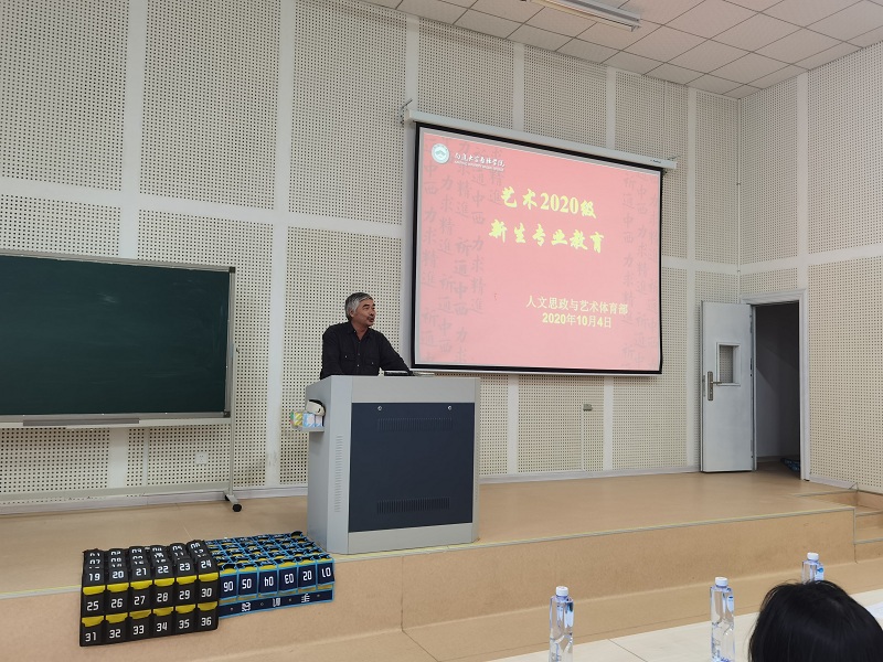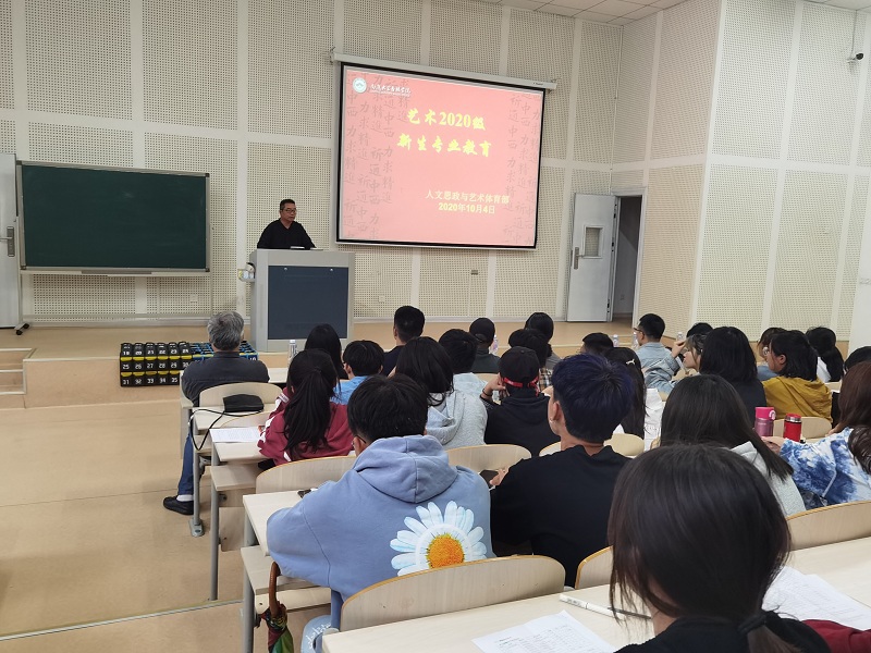 10月4日下午艺术学院张卫院长一行8人来我院开展的新生入学教育。视觉传达设计、产品设计等四个专业的专业负责人、研究生代表同行,活动由学院副院长、人文思政与艺术体育部主任康卫东主持,2020级艺术专业240名新生参加了活动。