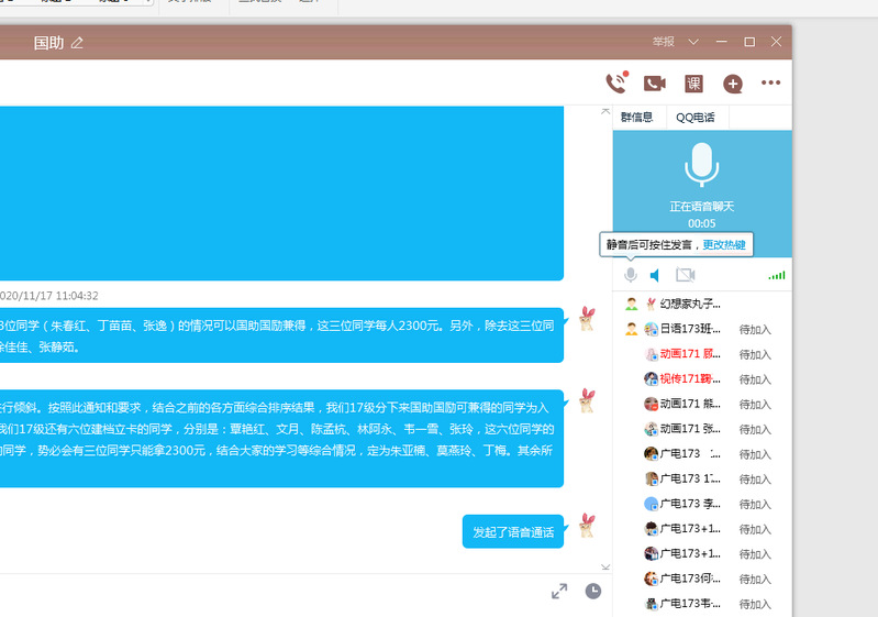 2020年11月17日,人文17(钟秀)组织开展了贫困生线上会议。本次会议旨在宣传学院奖助学政策,培养贫困学生感恩情怀,倾听学生对学院奖助学工作的想法。会议由辅导员张晓霞老师主持,人文17(钟秀)受助贫困生参加了本次会议。