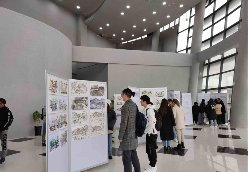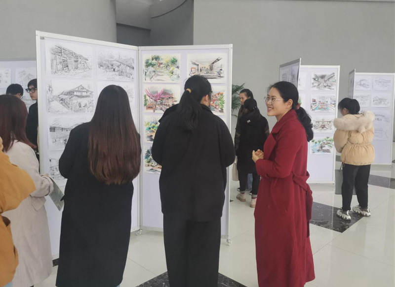 为给同学们提供一个走出教室、亲近自然、激发创作灵感,完成优秀作品的机会。2020年11月2日至13日组织2019级本科学生赴无锡杭州等地外出实习写生。写生期间王玲和周延鹤老师每天与学生一起实地写生,示范与修改作业。通过活动训练了学生快速造型的能力,取得了可喜的成绩。师生们从千张速写作业中挑选出400余幅优秀作品展出。与以往相比,更加体现出了创意新颖、功底深厚、色调定位合理等优势,其中包括山水速写、建筑速写等。虽然本周阴雨绵绵,但还是吸引了全院众多师生冒雨前来欣赏,并得到了大家高度的评价与肯定。