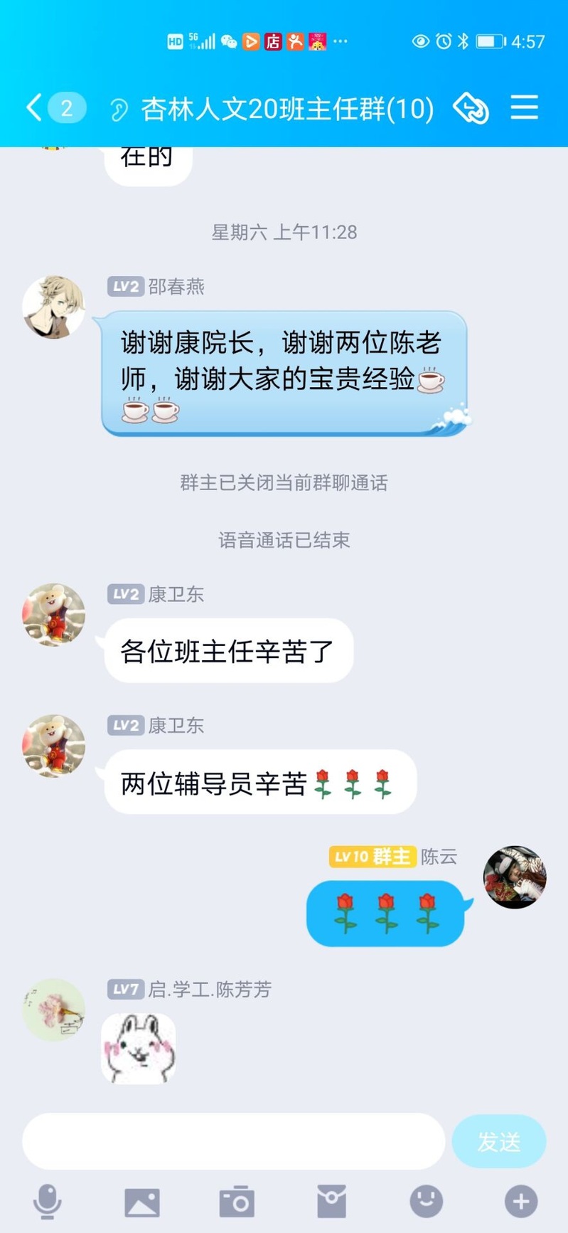 11月28日,人文思政与艺术体育部20级顺利召开班主任工作例会,本次会议以线上的形式进行,辅导员陈云、陈芳芳主持了会议,20级全体班主任参加了会议。