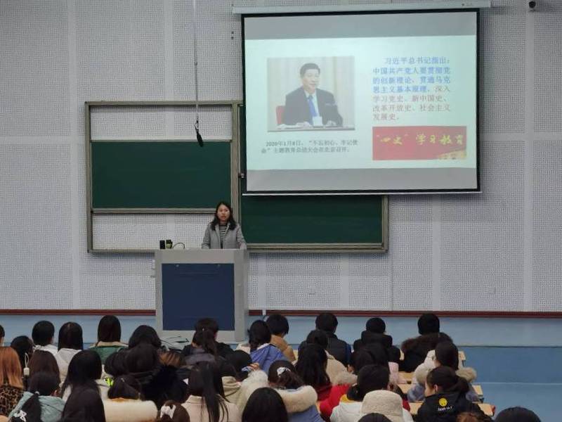 12月10日下午,人文思政与艺术体育部2020级学生于启东校区JX7-8-110教室开展“四史”学习教育活动。此次会议由辅导员陈芳芳主持,中文、英语、动画、产品设计四个专业的全体学生参加了活动。
