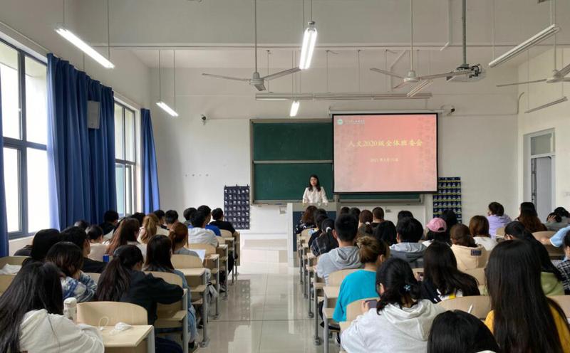 5月19日中午,人文思政与艺术体育部在JX3-4-114教室组织召开2020级班委期中会议。会议由辅导员陈芳芳老师主持,全体班委参加。