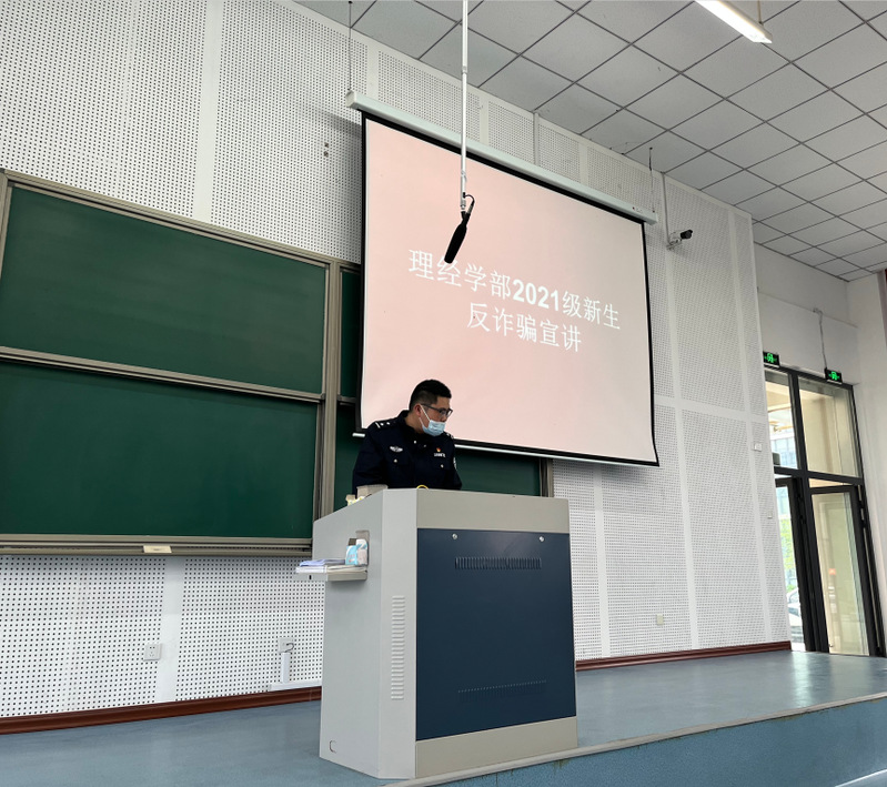 本次讲座以“初入校园 安全第一”为主题,杨部长从防诈骗、防盗、防火以及自我保护意识提升四个角度出发,结合往年校内外的重大案例,并结合自身经历,为同学们上了一堂严肃而不失生动的安全教育课。其次,杨部长就即将到来的新生军训提出相关注意事项提醒,着重指出所有训练都应建立在健康安全的基础之上,要量力而行之,但同时又鼓励同学克服娇气,思想上身体上时刻准备接受一切挑战的勇气和信心。最后,辖区派出所警官为同学们列举介绍了时下最常见的的诈骗手段,涵盖电信诈骗,网络诈骗等,提醒同学们提高警惕,不贪图小便宜,远离诈骗陷阱。
