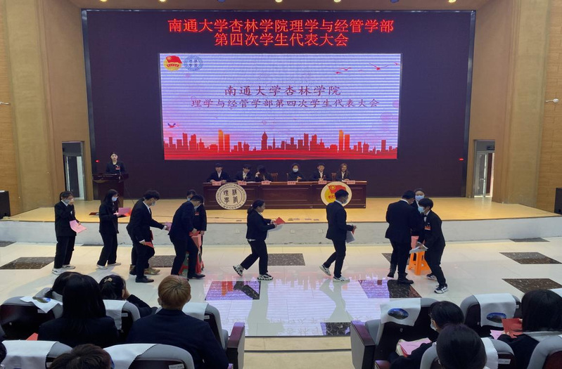 大会慷慨激昂的国歌声中拉开序幕。学部学生会轮值主席邹颖向大会作学代会筹备工作报告,学生会主席团成员李祥雨作提案工作报告,总结了学生过去一年中的工作成果和努力方向。随后,大会进行新一届学生会主席团和学生会委员的选举。在大会总监票员、监票员的监督和总计票员、计票员的统计下,与会代表以无记名投票的方式,选举产生叶楠、梁妮玮、曹馨月、张承阳等29名学生会工作人员,及王钰嘉、邓康等5人第四届学生会委员会委员。最后,大会审议通过《关于南通大学杏林学院理学与经管学部第四次学生代表大会工作报告的决议(草案)》和《关于南通大学杏林学院理学与经管学部学生会提案工作报告的决议(草案)》。