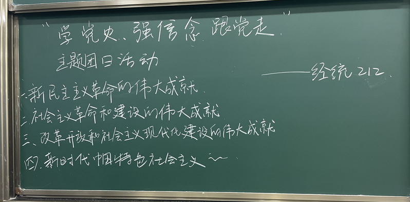 为带领班级同学深入学习习近平总书记七一重要讲话精神,经统212班于11月11日召开“学党史、强信念、跟党走”主题团日活动。活动由团支书王梓金主持。