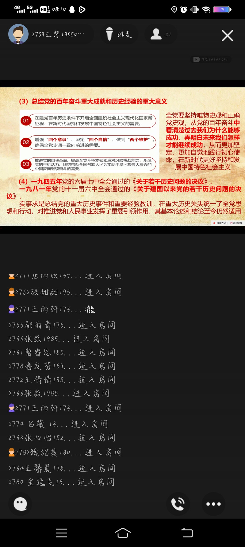 11月27日上午8点,经统213在通过线上形式召开十九届六中全会专题学习会,由团支书王慧同学主持。