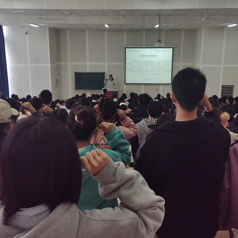 本次会议以期末诚信考试宣讲为主,以防范电信网络诈骗宣讲为辅。会议伊始,何俊含老师先就我院学生被诈骗案情的通报给同学们做警示,并反复强调防范电信网络诈骗的重要性。接着,何俊含老师带领大家阅读了诚信考试条例,并着重说明了考试作弊的后果及其对个人发展的影响。最后,由胡永康同学带领全体同学进行诚信考试宣誓,至此,年级大会圆满结束。