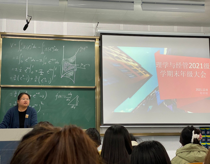 12月10日下午,我学部国贸、经统大一年级于1-2教学楼109教室召开期末年级大会,会议由辅导员赵亚娟老师主持。