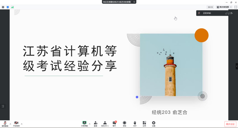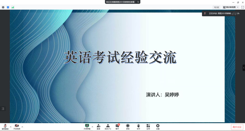 会上,首先由国贸201吴婷婷同学作英语考试经验交流。她将四六级考试中各个题型做了细节介绍,分别从长期计划和短期计划给出建议,提醒同学们要认真归纳题目套路,注重词汇积累,准备通用写作句式,在考试前多听真题听力,保持题感。接着,经统203俞芝合同学分享了江苏省计算机等级考试经验。对于一级和二级理论备考,俞芝合同学建议大家做大学计算机信息技术实验与测试教程上的习题,利用题海战术和碎片记忆法结合,完成理论准备工作。一级操作题,书上也有操作题有详细的操作指导,她建议大家熟记选项卡的功能,总结套题的考点,以节省时间。对于二级操作题,俞芝合同学推荐观看B站的真题讲解,自己学着操作。她提醒大家理论题提交后不能修改,操作题完成一步保存一步,以防万一卡顿,并且在一分钟左右交卷。最后,由国贸202杨雯慧同学分享本专业学习经验。首先她强调课下需要多关注新闻时事热点,认真对待课堂,注重专业知识的平时积累,多找老师请教疑问,走出舒适圈,拒绝无效社交多多运动,全面发展。分享结束后,有同学提出疑问,杨雯慧同学也一一为同学解答了相关细节问题。
