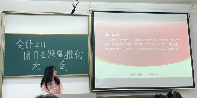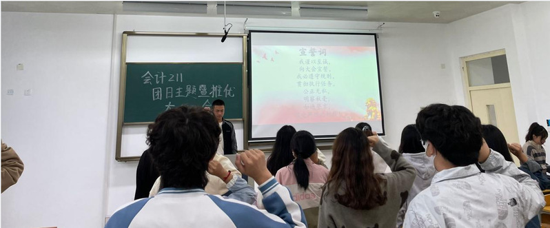 10月27日,会计211全体成员在教学楼1-2-103参加学习党的二十大精神的主题团日活动暨2022下半年推优大会,由团支书郑欣雨同学主持。