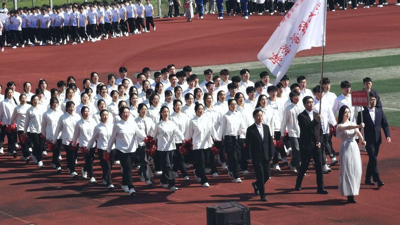 此次运动会在各个学部展现的特色方阵开幕式表演下正式开始,各学部学子步伐整齐,服装统一,活力四射。表演场地上,古琴声,鼓声,歌声,折扇声,脚步声,鼓掌声,响彻操场。在那火般热情的跑道上,运动健儿们肆意的奔跑,他们似呼啸而过的风,所过之处独留下同学们的加油声,此起彼伏;操场一侧,跳高跳远正如火如荼的进行着,哪怕跌入沙坑,哪怕蹭落横杆,也依旧奋力拼搏,永不言输;足球场上,许是奋力一扔,铅球便能在空中划出胜利的弧度,扬起的嘴角,彰显着四射的活力。耳畔是裁判的枪声,同学们的加油声,比赛过程中,运动员们秉承着友谊第一,运动第二的原则,在骄阳下尽情地挥洒着汗水,努力拼搏,绽放着独属于他们的风采。