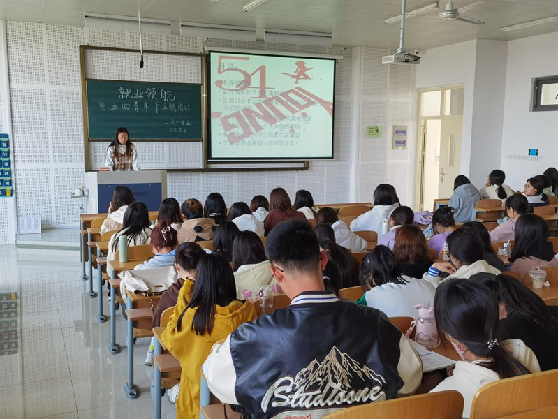 5月8日上午,理学与经管学部会计专业21级在教学楼1-2 405教室举行就业领航日暨五四青年节主题团日活动,本次活动由会计213班团支书冯鑫鑫主持。