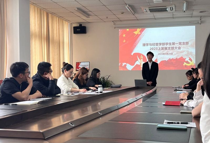 5月24日,理学与经管学部学生第一党支部在启东校区综合楼A201会议室召开2023年上半年党员发展支部大会,会议由党支部书记罗晶晶同志主持,支部全体党员、发展对象出席会议。