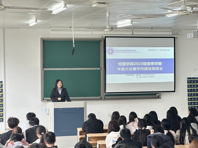 为进一步强化学风建设,营造积极向上的育人环境,经管学部于2025年4月24日在JX7-8-107召开2023级春季学期年级大会暨学风建设推进会。党支部副书记牟蕾、辅导员杨俊喆、洪静及经管学部2023级全体学生参会,会议由杨俊喆、洪静主持。