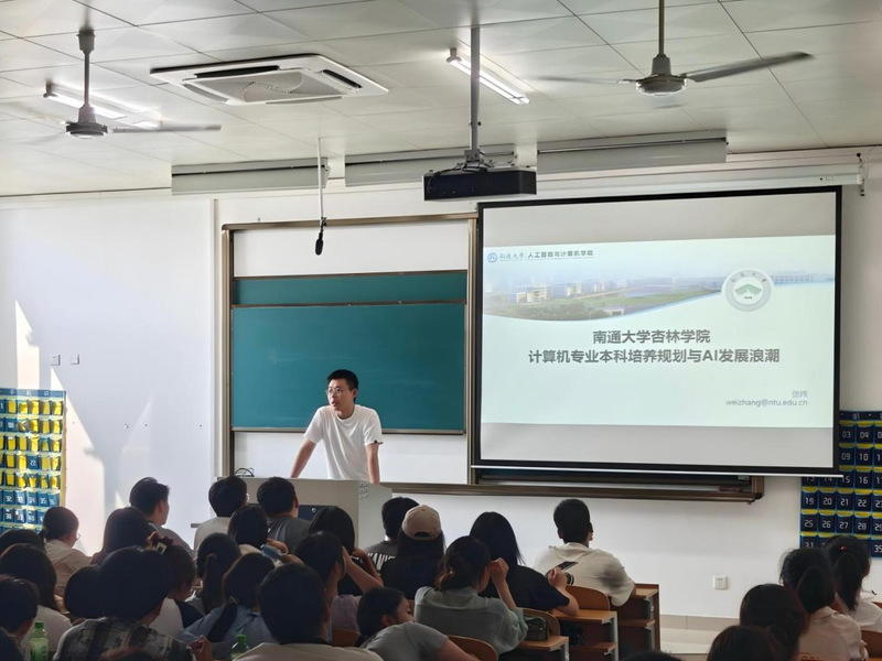 张炜为新生们解析了学科培养要求、课程学分及比例、人工智能发展及应对策略。张炜介绍了计算机科学与技术专业的学科发展历程和前景,并对学分构成、学分占比、能力要求、课程体系等进行了详细讲解,为新生们提供了一份权威、具体的“教育路径图”,指引学生设立明确的学习目标、建立阶段性和长期学业规划。
