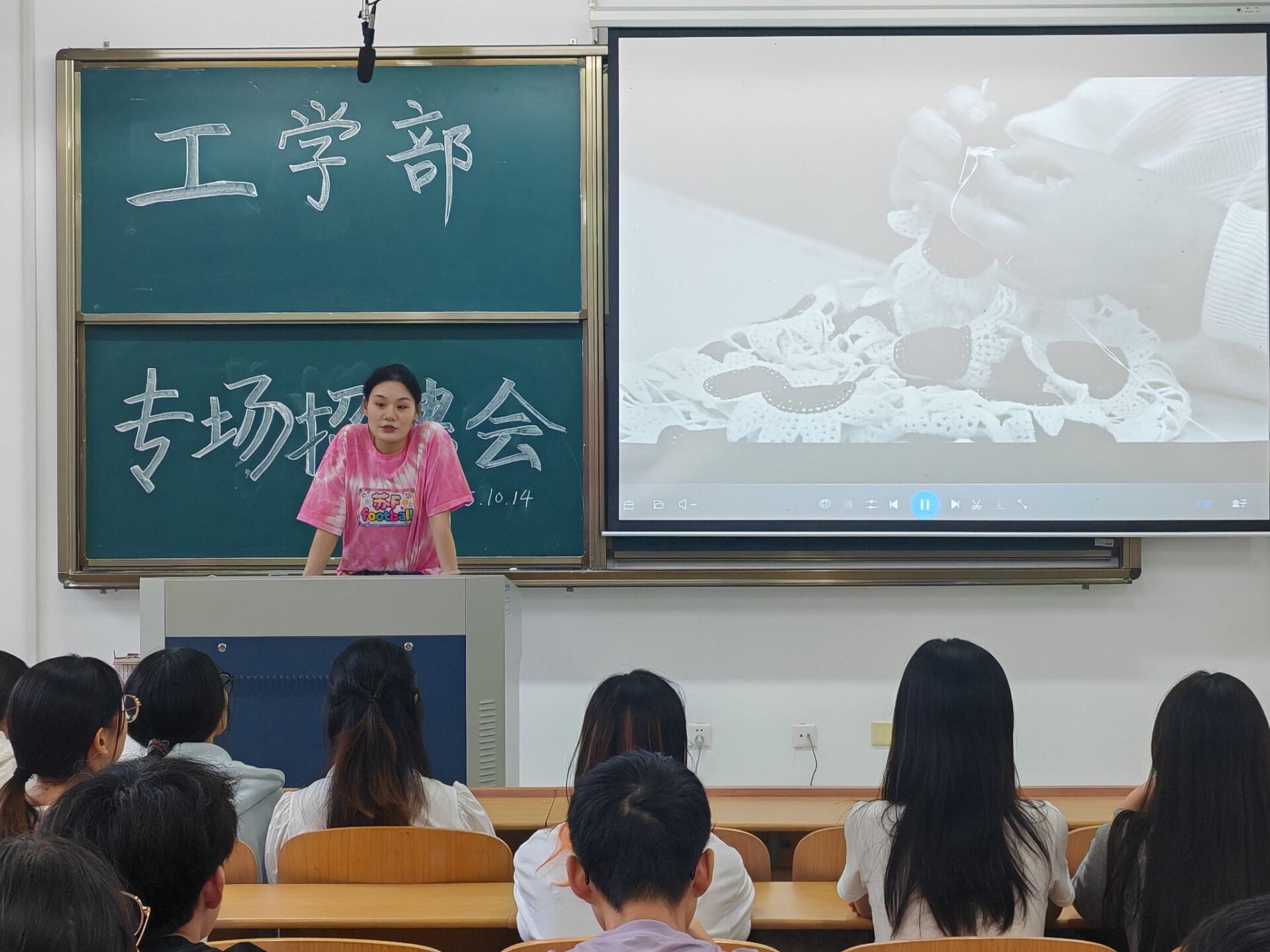 10月14日下午13:30,工学部于JX1-2-115开展2026届服装设计与工程专业专场招聘会。本次招聘会由江苏华艺集团工作人员到校宣讲,工学部党总支副书记曾兵主持。