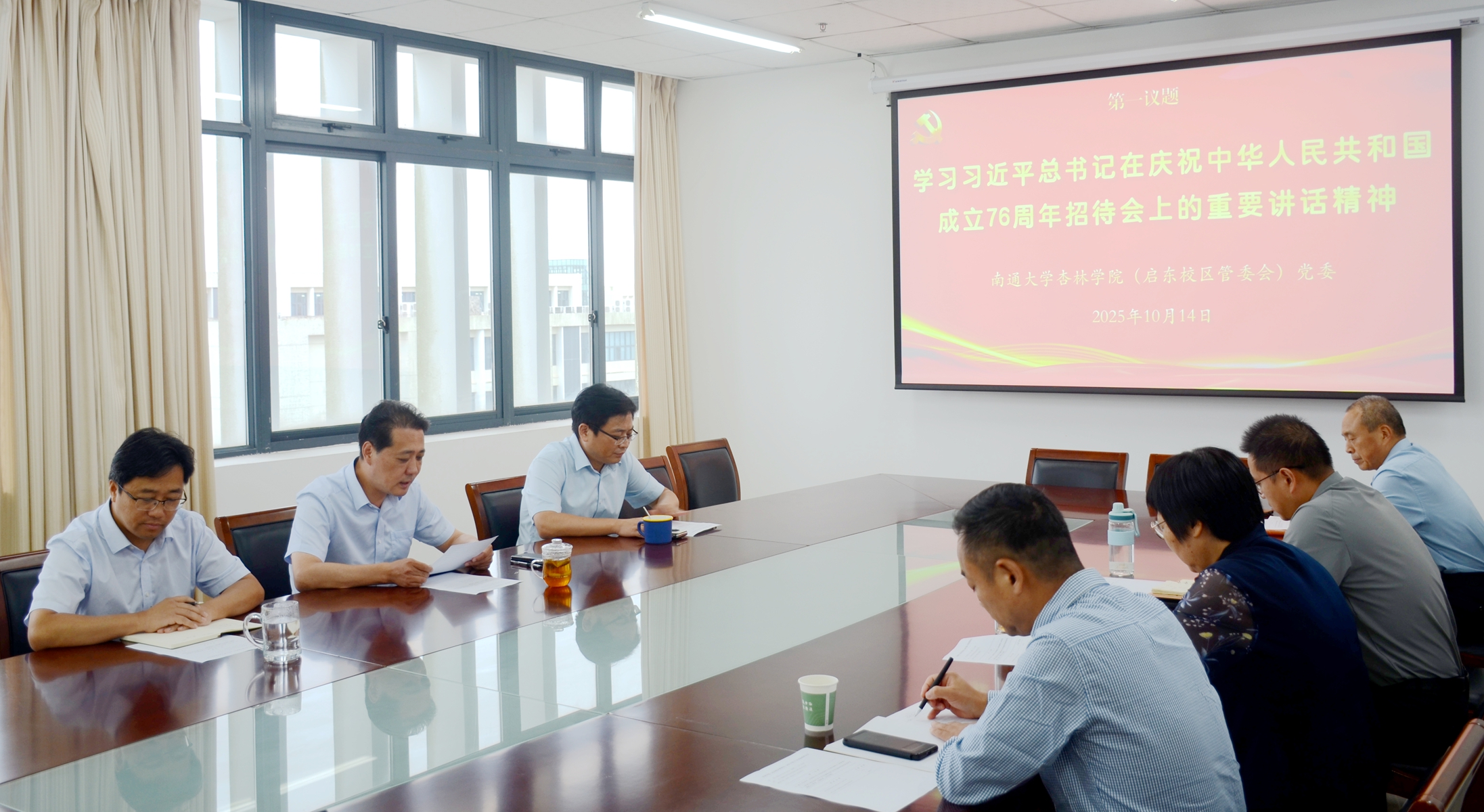 10 月 14 日上午,学院(管委会)党委以“第一议题”形式深入学习习近平总书记重要讲话精神和重要文章。学院(管委会)党委书记、启东校区管委会常务副主任朱晓阳主持会议并领学。