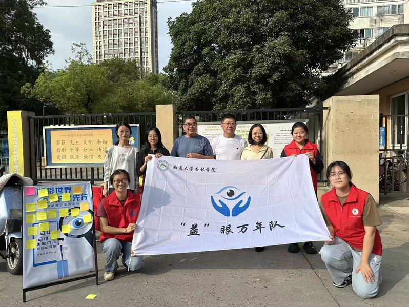 为破除用眼健康认知壁垒、筑牢各年龄段人群视力保护意识,2025年10月17日下午,医学部学生会联动“益眼万年”志愿实践小分队,深入南通社区开展“睛彩世界·护眼先行”全球护眼日宣传活动,将专业的护眼知识与暖心服务,化作守护居民“视界”的微光,悄然浸润生活日常。