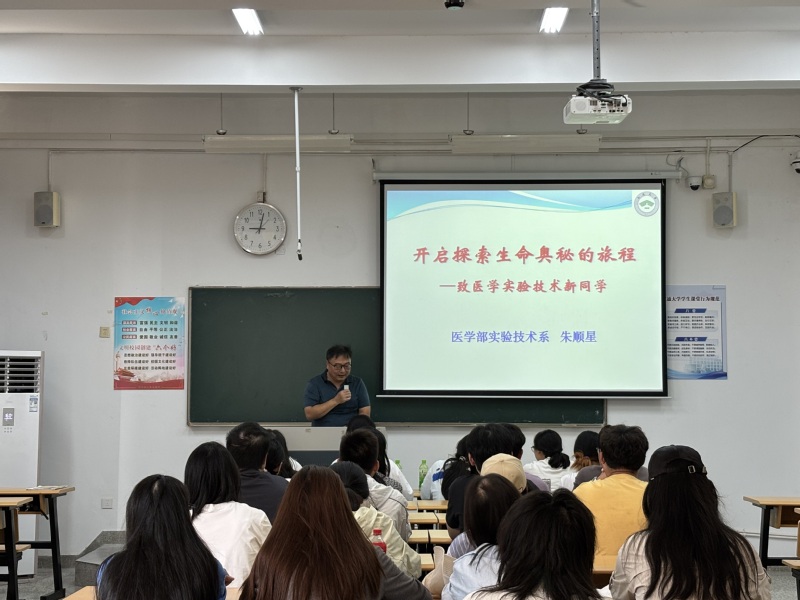 金秋送爽,丹桂飘香。9月23日上午,医学部于啬园校区JX02-105教室开展2025级医学实验技术专业新生入学教育,南通大学动物实验中心副教授、杏林学院医学实验技术系主任朱顺星应邀为全体新生带来了一场内容丰富、深入浅出的专业启蒙讲座。