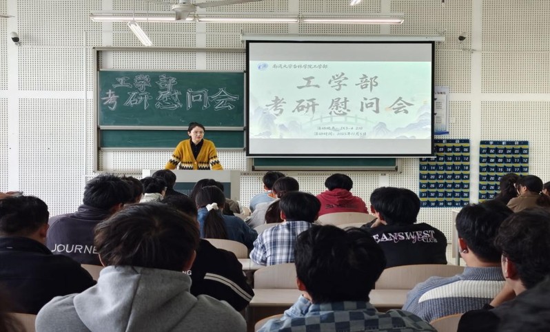 为有效缓解考研学子冲刺阶段的心理压力,强化人文关怀与科学引导,进而营造积极向上、笃学奋进的备考氛围。工学部于11月5日上午10:40在JX3-4-201教室组织召开考研慰问会。工学部党总支副书记曾兵、副主任舒尹卓等参加会议。