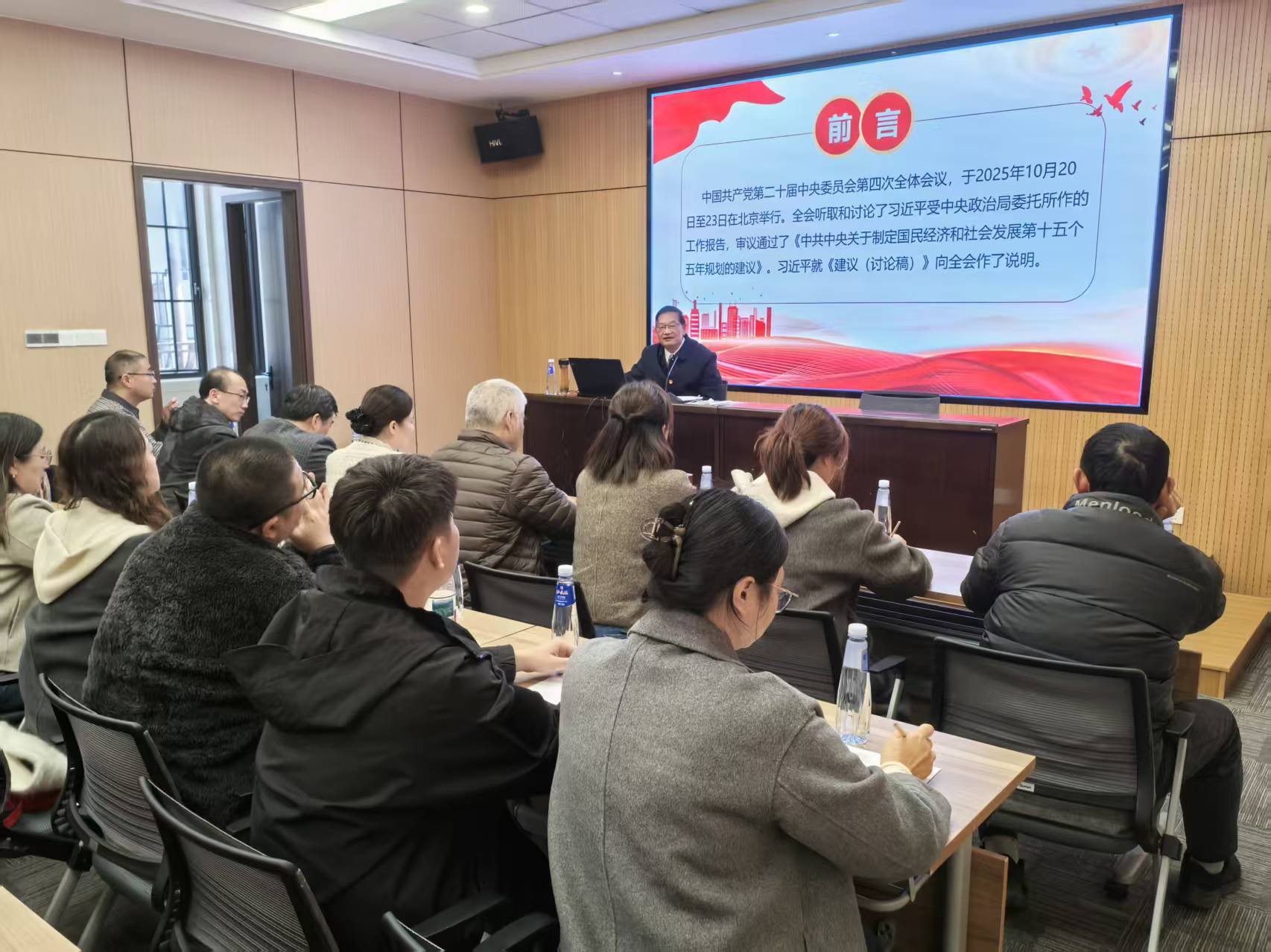 刚抵达沙家浜景区,同志们便走进报告厅,聆听基础学部主任顾玉平教授学习贯彻党的二十届四中全会精神的专题宣讲,他从全会的背景和重大意义、“十五五”规划的主要内容、贯彻落实全会精神的实践要求等方面进行深入解读和分析,进一步深化党员干部对党的二十届四中全会精神的理解和把握。