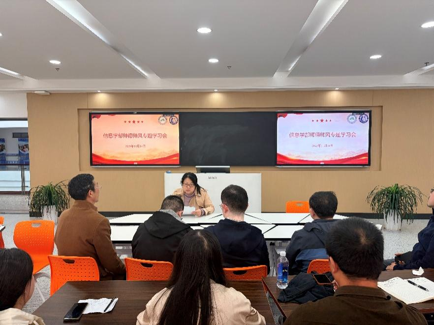为深入贯彻落实立德树人根本任务,进一步加强教师队伍建设,强化师德师风育人底色,提升教师思想政治素养与职业道德水平,11月14日、25日,信息学部分别在啬园校区、启东校区组织全体教师开展师德师风专题学习活动,以思想淬炼筑牢育人初心。