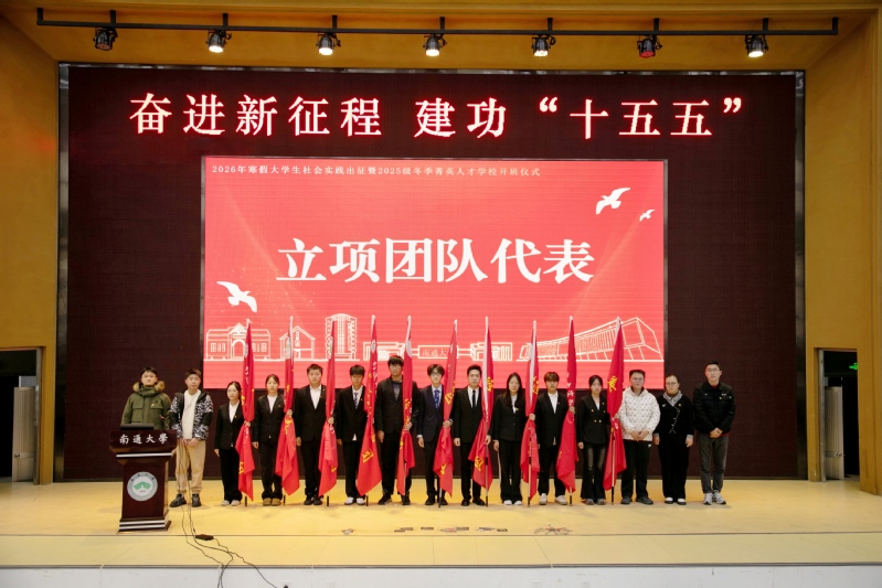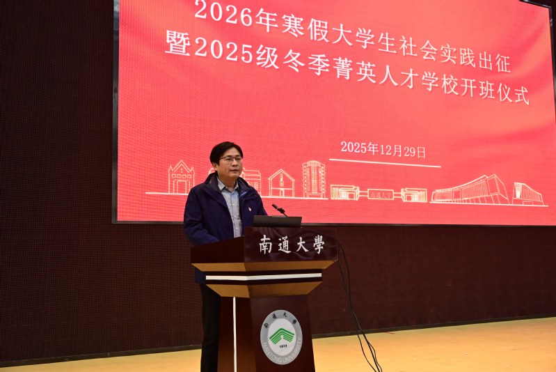 12月29日中午,我院于启东校区大学生活动中心报告厅举办2026年寒假大学生社会实践出征暨2025级冬季菁英人才学校培训班开班仪式。学院(管委会)党委副书记兼副院长陈龙出席活动并讲话。