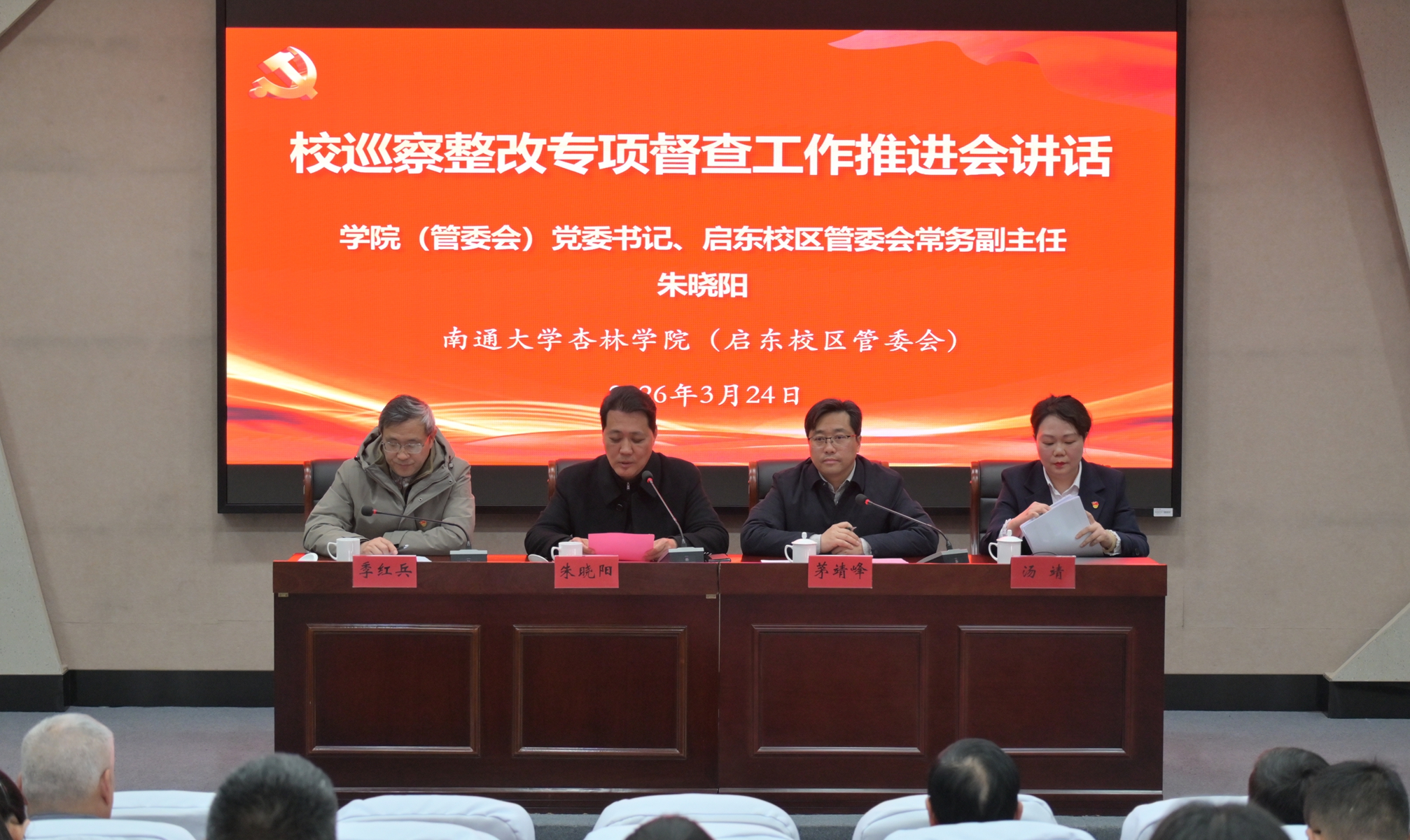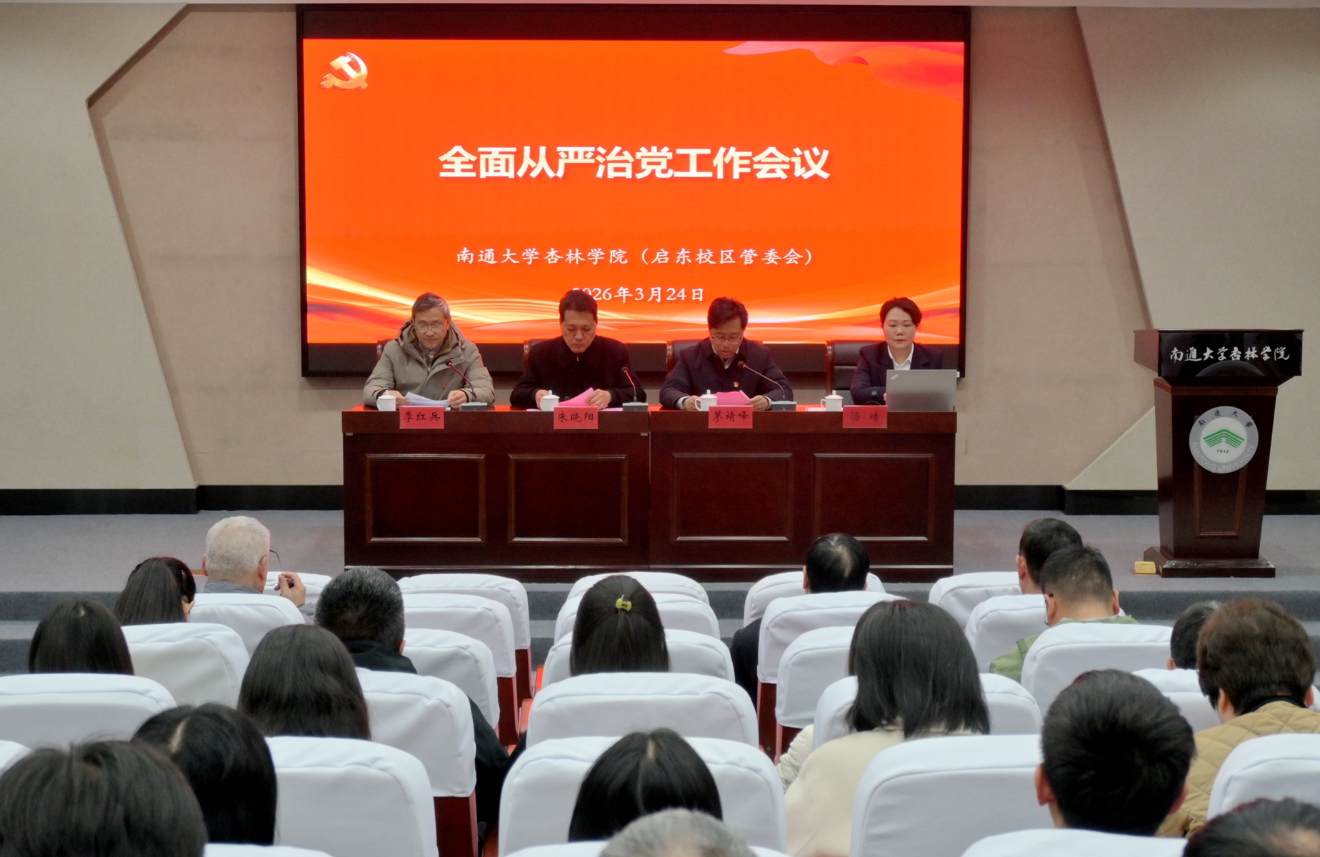 3月24日下午,学院(管委会)在启东校区图书馆报告厅召开2026年全面从严治党工作会议暨巡察整改动员部署会,传达学习二十届中央纪委五次全会、十四届省纪委六次全会精神和学校全面从严治党工作会议精神,安排部署2026年全面从严治党工作任务。学院(管委会)党委书记、启东校区管委会常务副主任朱晓阳出席会议并讲话。学院(管委会)党委副书记,院长茅靖峰主持会议。