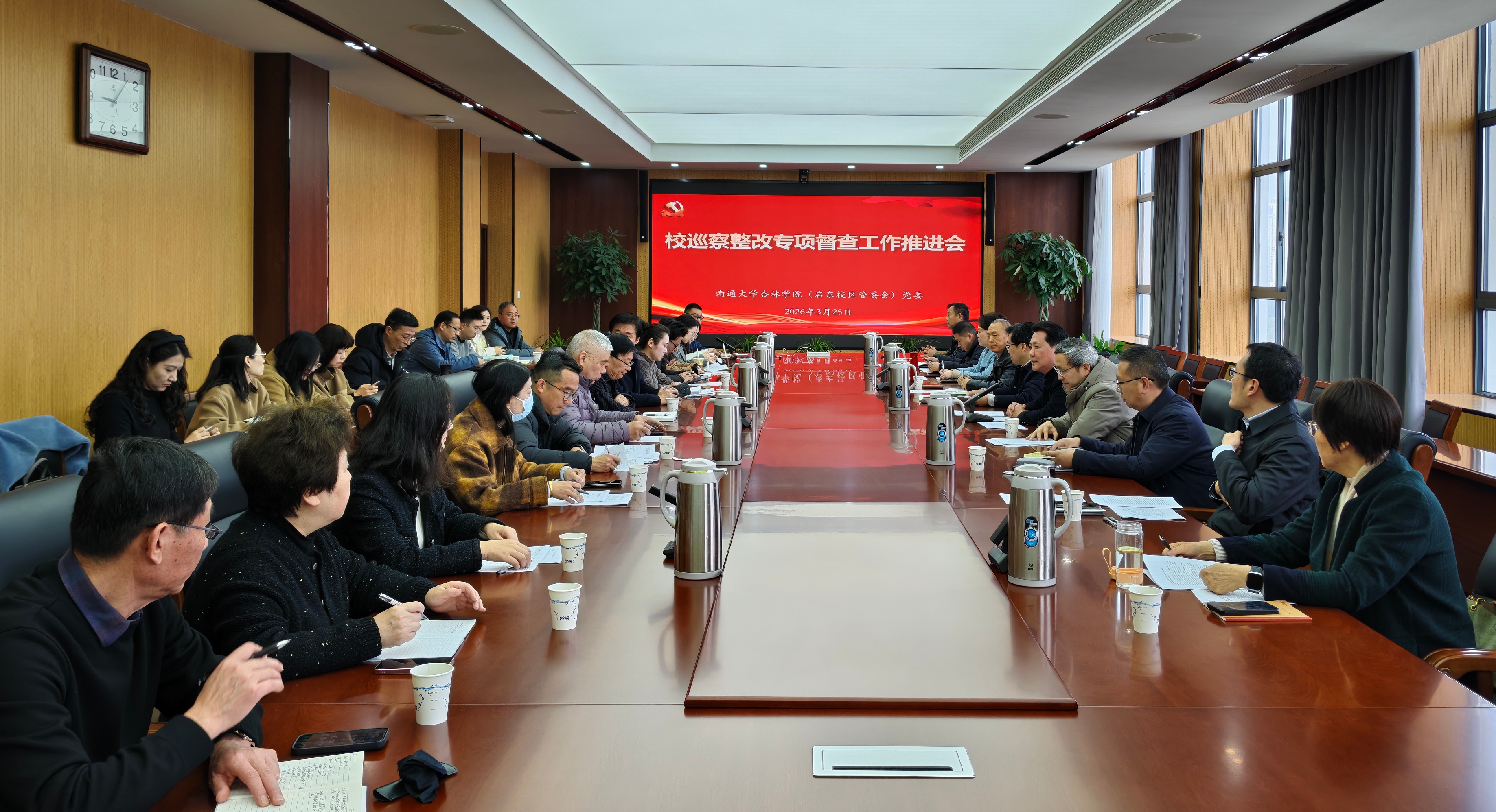 为深入贯彻落实上级关于巡视巡察整改工作的部署要求,压紧压实巡察整改政治责任,扎实做好巡察“后半篇文章”,3月25日上午,学院(管委会)专题召开校巡察整改专项督查工作推进会,学院(管委会)党委书记、启东校区管委会常务副主任朱晓阳主持会议并讲话。