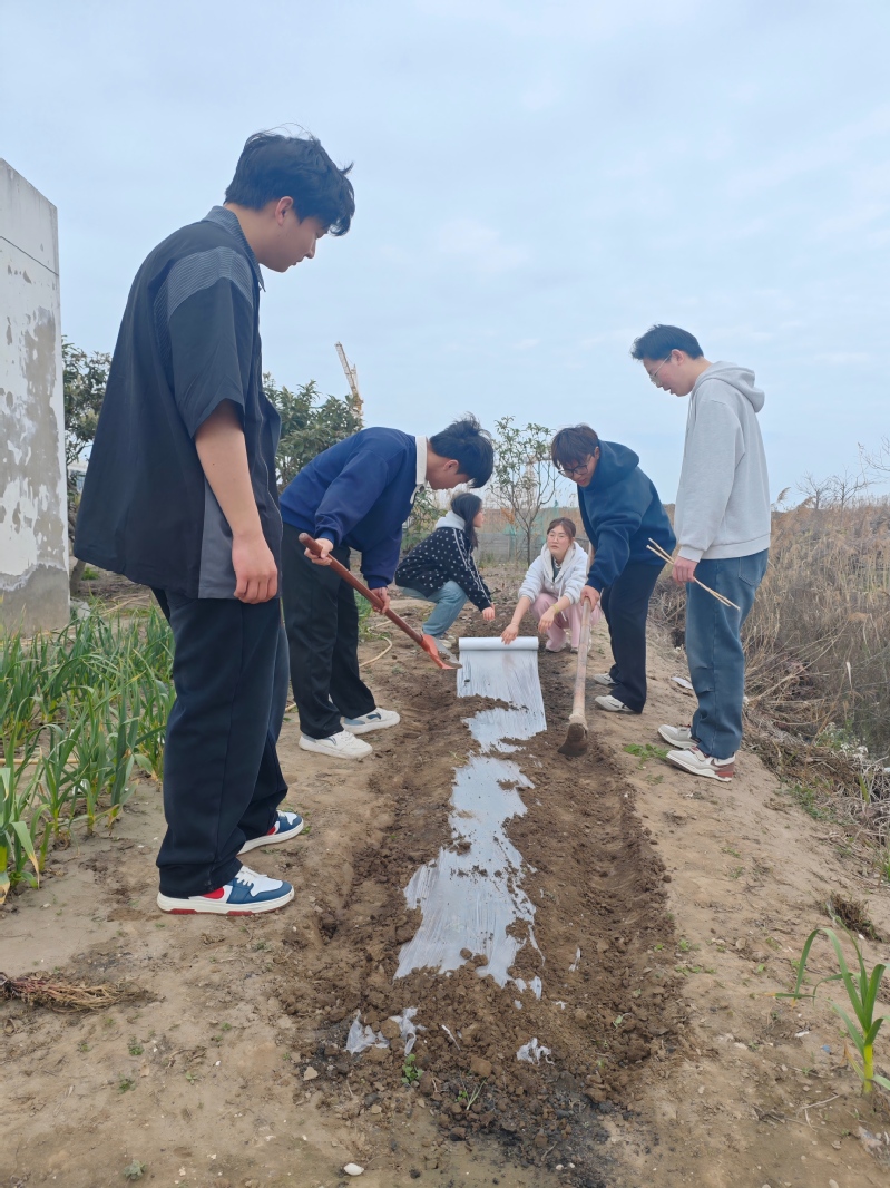 活动现场,党员同志和师生们满怀热情来到劳动基地,在后勤老师的细致讲解下,系统学习黄瓜种植技巧及幼苗后期养护常识。大家分工明确、默契配合翻土、播种、浇水、覆土等流程,有条不紊地忙碌在田间地头,亲身感受农耕劳作的辛劳与意义。种植结束后,大家齐聚田埂,观察生长情况,交流种植心得。