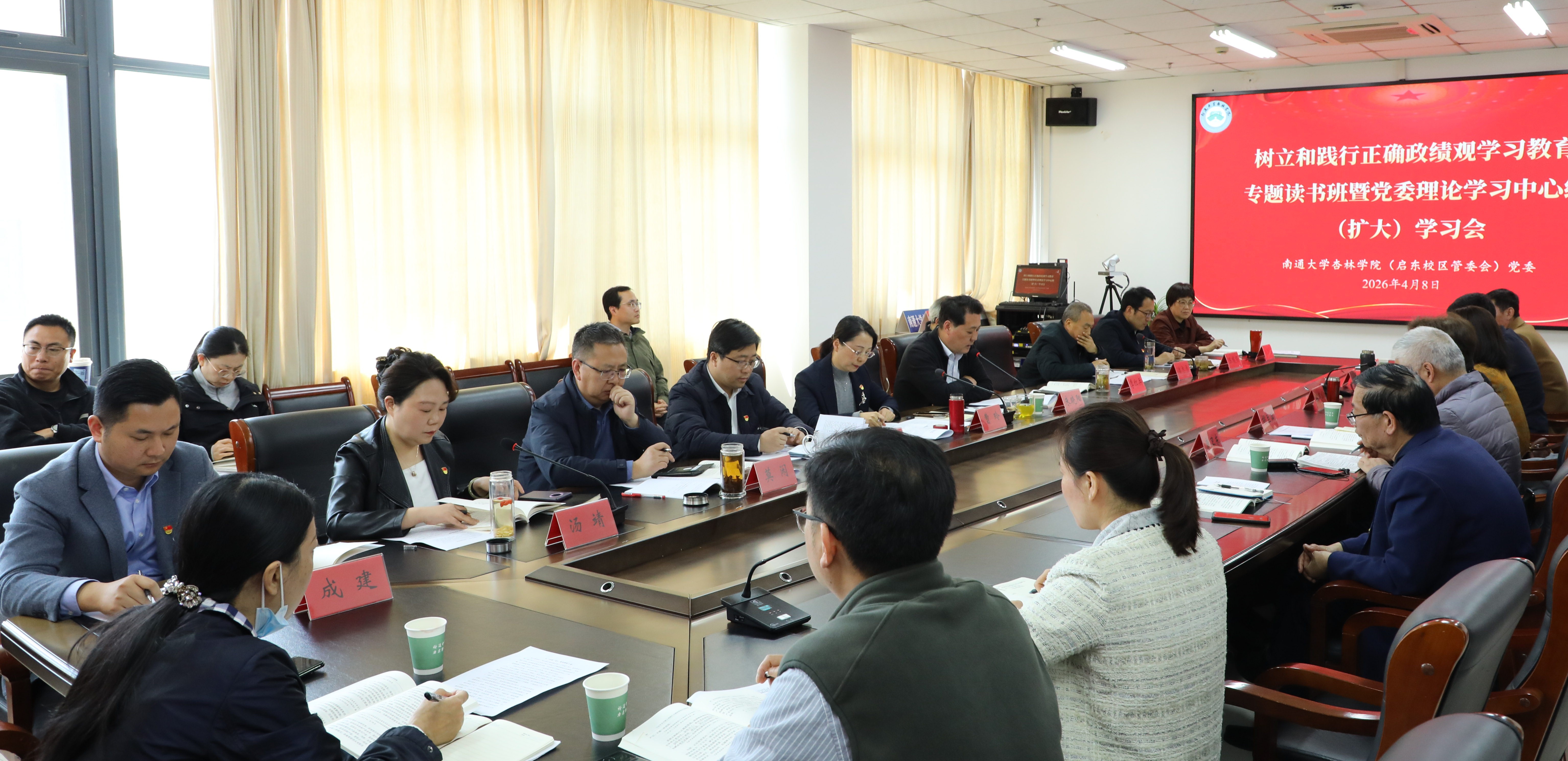 4月7日-9日,学院(管委会)举办树立和践行正确政绩观学习教育专题读书班暨党委理论学习中心组(扩大)学习会。校纪委副书记曹玲来院督学指导,学院(管委会)党委书记、启东校区管委会常务副主任朱晓阳做辅导报告,全体领导分别进行领学,并作交流发言。
