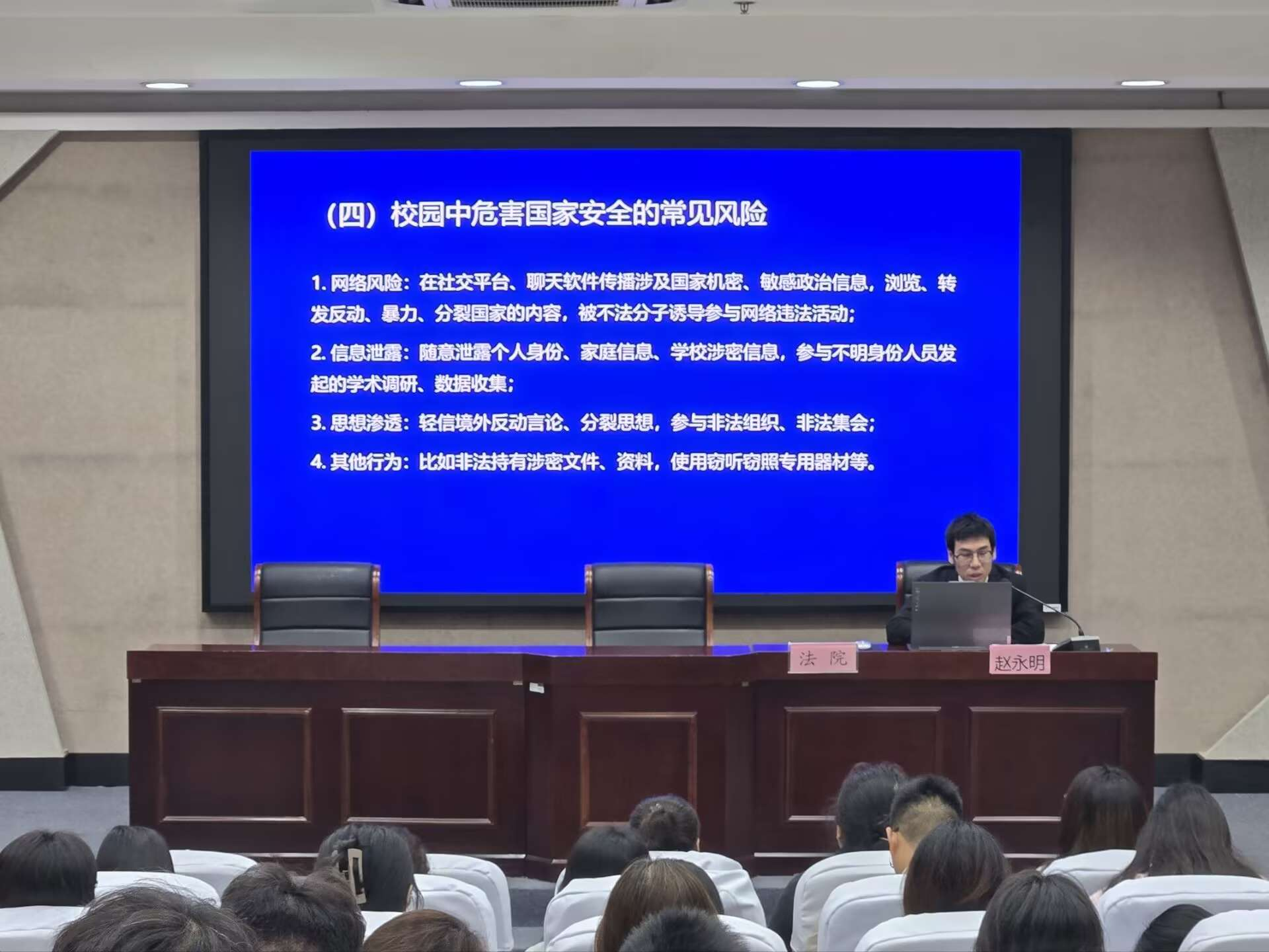 为深入学习贯彻习近平总书记关于总体国家安全观的重要论述,全面增强青年学生国家安全意识与法治素养,筑牢校园安全保密防线,在第11个“4·15全民国家安全教育日”到来之际,信息学部党总支于4月15日上午在图书馆报告厅102举办“国家安全在心中,法治精神伴我行”主题国家安全教育系列活动。本次活动特邀启东市人民法院高新法庭法官助理赵永明、丁晨雨同志莅临主讲,学部师生代表共同参与学习。